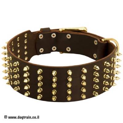 קולר לכלב רחב במיוחד עם קישוטי קוצים מוזהבים