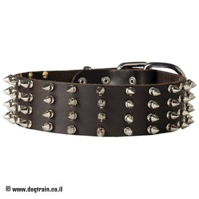 קולר רחב לכלב מעור עם קישוטי קוצים